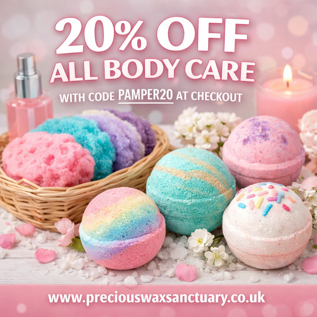Precious Wax Sanctuary is a small UK business creating handmade soy wax melts with a strong, long-lasting scent throw. Each wax melt is hand-poured in small batches using high-quality fragrance oils, perfect for cosy homes and thoughtful gifting..